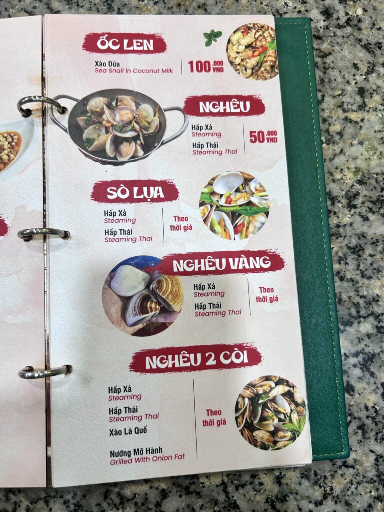 - ハマグリのレモングラス蒸し(Nghêu Hấp Sả) – 大ぶりのハマグリをレモングラスで香り高く蒸した一品。さわやかな香りと程よい塩加減で貝本来の旨みが引き立ち、「素晴らしい一品」と評されていますhcm-cityguide.com。あっさりした味わいは他の濃厚な味付け料理の合間の箸休めにも最適で、「お代わりした」というファンもいるほど安定した美味しさですhcm-cityguide.com。