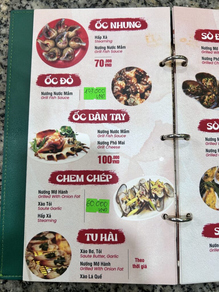 オックダオでは、日本ではなかなかお目にかかれない種類の巻貝や二枚貝、エビ・イカなどを使った料理がずらりと並びますnote.com。素材ごとに様々な調理法・味付けが選べるのも特徴で、ベトナムならではの濃厚な味付けはビールとの相性も抜群と評判です4travel.jp。中でも日本人旅行者の口コミで評価が高かったおすすめ料理は次のとおりです。