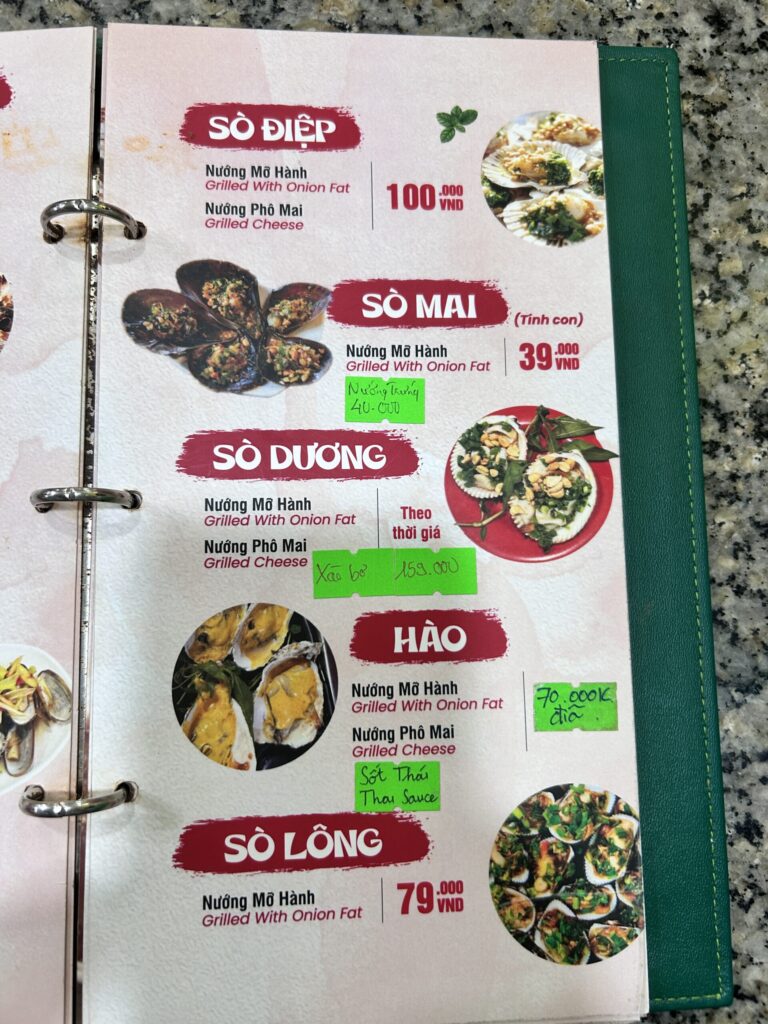 ▶️この他にも、ネギ油ソース(Mỡ Hành)も貝料理との相性が抜群です。例えばヒオウギ貝(小ぶりのホタテ貝)や赤貝の仲間にネギ油とピーナッツをかけて焼いたものは香ばしく安定感のある美味しさで、「迷ったらネギ油味にしておけば間違いない」と言われるほどnote.com。また貝のエキスがたっぷり染み出た貝のお粥も隠れた人気メニューで、「あっさりしていながら奥深い旨味でぜひおすすめ」との口コミがありましたgekiuma.asia。総じてオックダオの料理は味付けが全体的に濃いめで、ニョクマム(魚醤)やチリを効かせたパンチのある旨辛テイストが多く、「味が濃いのでビールにぴったりでした」との声もあります4travel.jp。テーブルにはライム塩コショウや自家製のヌクチャム(甘酸っぱい魚醤ダレ)、香草のラウラム(ベトナムコリアンダー)などがセットで用意されており、自分好みで味変しながら楽しめるのも魅力ですnote.com。辛い物が苦手な場合は注文時に「ノースパイシー(辛くしないで)」と伝えれば調整してくれるとの情報もあり、辛さが不安な人でも安心ですnote.com。