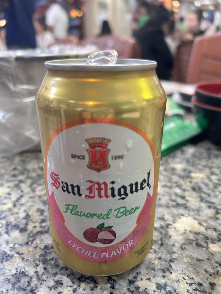 サンミゲルビール(と思ったらライチフレーバービールだった)28000ドン(170円)